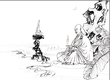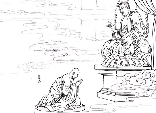 十、遵远公意,忆阿弥陀 僧济于是执持蜡烛倚靠着桌子,专注观想,毫无散乱,又请僧众为他诵《无量寿经》。到了五更的时候,僧济把蜡烛交给徒弟元弼,令他执持烛火随众经行。