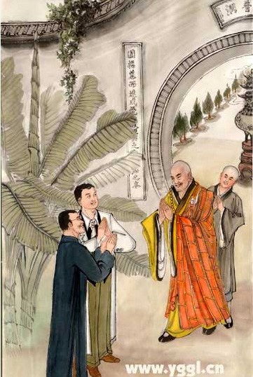 居士国声 画传缘起 大集经云:【末法亿亿人修行,罕一得道,唯依念佛,得度生死】印光法师正是遵循释迦世尊之教劝修易行疾至之道,提倡念佛导归极乐。法师著作有【文钞】【续编】等,简明扼要,论【修】用力少而得效速,说【行】下手易而成功高,应机对象是三根普被,利钝全收,受化之多皈依者众,风靡海内外,公推连宗十三代祖师,实菩萨再来之典范矣。三宝弟子王国声先生,出身艺术世家,是高级工艺美术大师,曾为陕西宁夏佛寺道观绘画雕塑受到高度赞誉。作品出展于美法日瑞士等国。他与印光法师同乡,由于这一特殊因缘,发心将印祖生平搜集整理绘出印光法师画传五十余幅,以饷后学,能以印光法师为师范者,必能利益社会,造福人群,庄严国土,利乐有情,佛门之优秀矣。王国声先生以绘画艺术弘扬佛法的精神难能可贵,但愿见闻随喜者,皆种善根,同增福慧,求生净土,共证菩提 。 佛历二千五百四十七年印祖圆寂六十三周年纪念日 |
