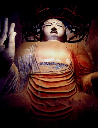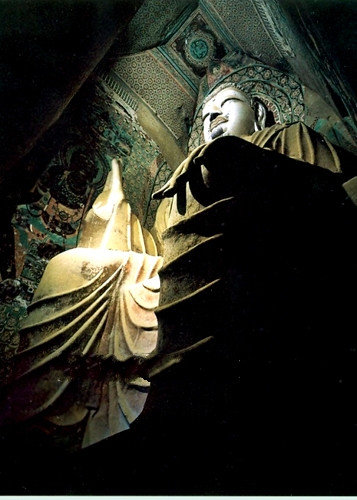 位于陕西省彬县县城西10 公里处的西兰公路(312)国道旁。大佛洞是唐太宗李世民为纪念他指挥的彬州浅水原大战和五龙极大战中阵亡将士而建,初名应福寺,完工于贞观二年(公元628年),主窟大佛依岩跌坐,身高二十四米,造形雄伟、雕饰富丽,据说是按照李世民本人的样貌雕刻的。也是目前众多大佛中保存最完好的一尊。 |