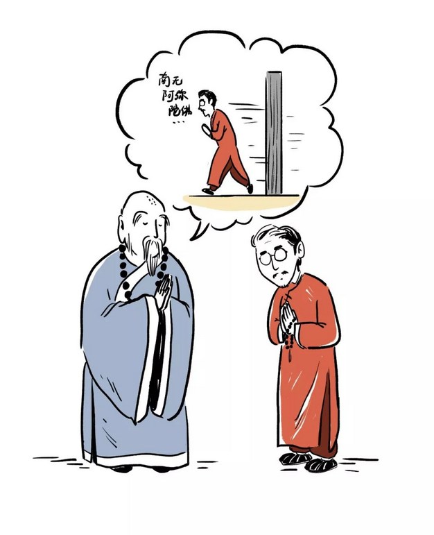 ⒉他晚年摒弃世俗事务,专心精勤念佛。曾担任青岛湛山寺佛教学校的教员,每天固定在他所住的寮房内念佛四万声。因怕有人打闲岔,他常常将房门反锁,假装外出。