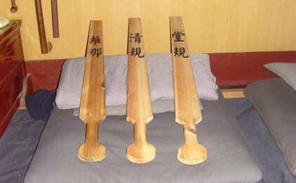 香板,指形如宝剑的木板,是禅堂中法力极大的法宝。 香板的长度和厚度,都有规定的尺码。它是一种维护寺院清规、惩罚违犯律仪的械具,也兼有警策行道、督勉精进的用意。 禅堂香板是怎么来的?话说清朝的“禅师皇帝”雍正皇帝,他的禅法受教于他的师父玉琳国师。在玉琳国师圆寂后,雍正帝担心国师的出家弟子中没有究明心地的出家人传承国师的衣钵,就四下搜寻玉琳国师的传人。在高旻寺找到一个癞头和尚,自称是国师的徒孙,但还未开悟。 雍正帝圣旨一下,赐予宝剑一柄,限他七天之内究明大事,七天之内若不开悟,就以此剑取他头颅。癞头僧接旨,如坐针毡,情急之下,拼命参究。到了七天末了,突然豁然大悟。此时他立刻喊道:“快拿宝剑来,我要去斩万岁的头”。大事已明,堪当重任! 从此以后,宝剑成了禅堂中极其重要的警策用具——当然,不能是充满戾气的那种钢刀铁剑,而是代表生发的木质的宝剑。 |