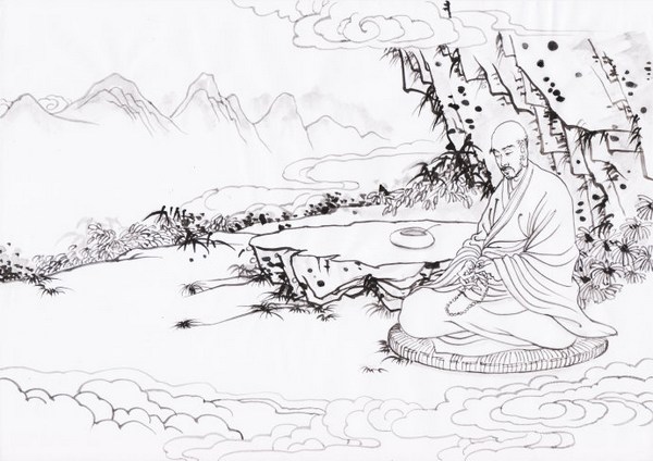 四、隐悟真寺,成深妙观 尔后,大师乃隐于终南山悟真寺,专修十六观法,冥心思惟,如法作观。不出数年,成深妙观,于定中备见宝阁、瑶池、金座,宛在目前。见此,大师不觉涕泗交流,不禁举身投地。